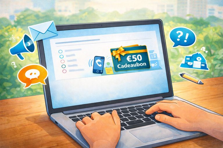 🎁 Om deelname te stimuleren verloten wij voor iedere 50 door huurders volledig ingevulde enquêtes een cadeaubon van €50,- onder de deelnemers. Hoe meer huurders meedoen, hoe meer cadeaubonnen we kunnen verloten.